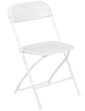 Folding chairs are available in various styles and typically start at $9.99 each. Remember, you may need to buy them in pairs.