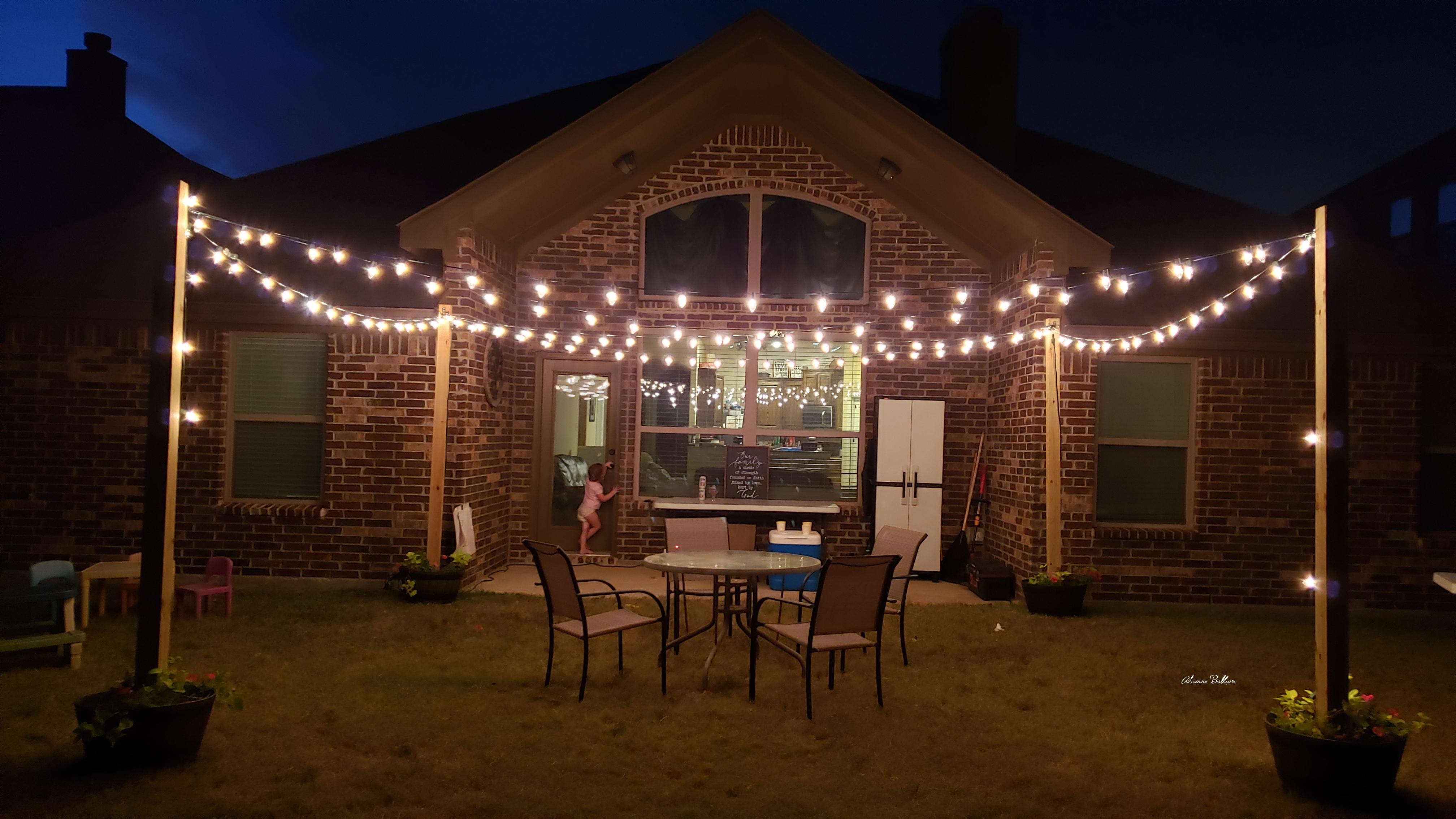 To set the scene, we draped string lights across our backyard planters, creating a cozy and inviting atmosphere. A long table, perfect for dining al fresco, was set up with black landscaping cloth as the tablecloth. We added a creative twist by repurposing gardening items as serving dishes, seamlessly blending with our garden theme.