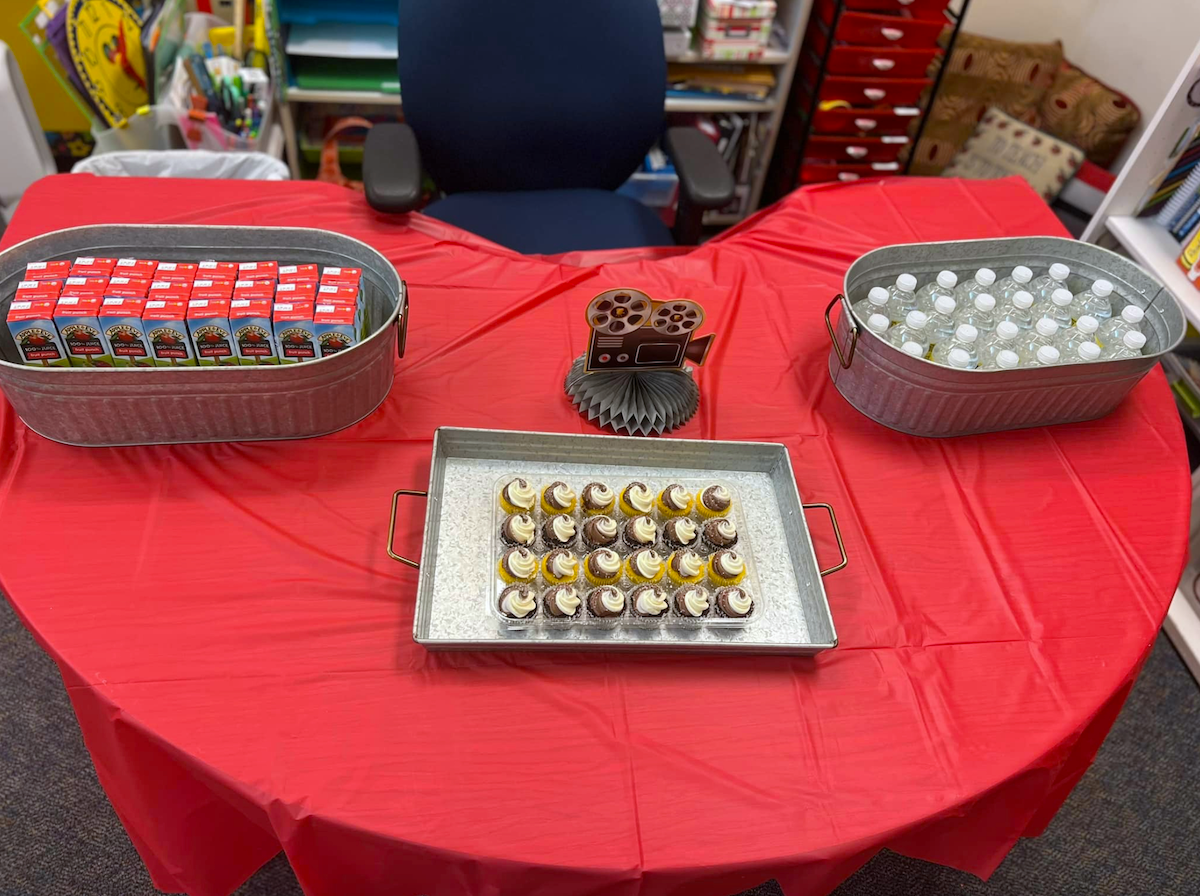 Amazon and Hobby Lobby are your best friends when it comes to gathering movie-themed decorations. I found some fantastic movie honeycomb centerpieces on Amazon that I reused from a previous party, along with a red carpet for the kids to walk down as they received their awards—perfect for photo ops! Consider adding a photo backdrop or decorating classroom doors and lockers for an extra touch of Hollywood glam.